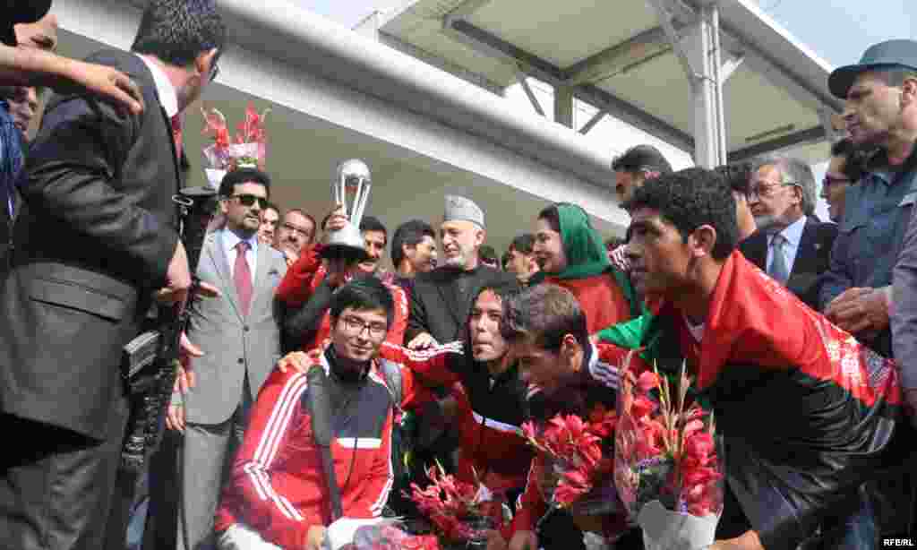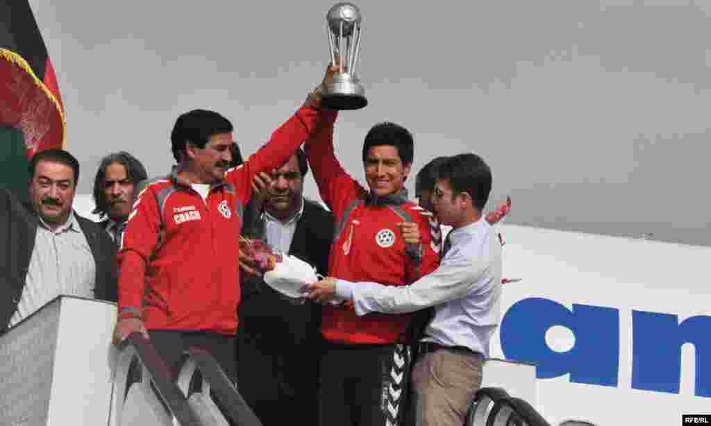 تیم ملی فوتبال افغانستان پس از پیروزی در مسابقات جنوب آسیا، صبح امروز به کابل برگشت. برای استقبال از ملی افغان، رییس جمهور کرزی، تعدادی از وزرای کابینه، اعضای شورای ملی و هزاران تن از باشندگان شهر کابل به میدان هوای بین المللی کابل رفته بودند. خبرنگار رادیو آزادی گزارش می دهد که ملی پوشان افغان با هزاران تن از باشندگان شهر کابل هم اکنون پیروزی شان را در غازی ستدیوم جشن گرفته اند. افغانستان شب گذشته در بازی نهایی جام جنوب آسیا 2-0 در برابر هند برنده شد و قهرمان این مسابقات گردید.
